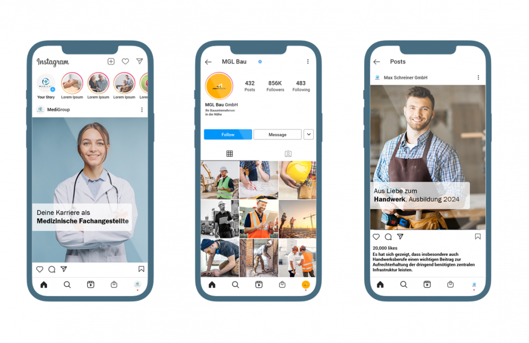 Einfach Mitarbeiter finden auf Facebook und Instagram.